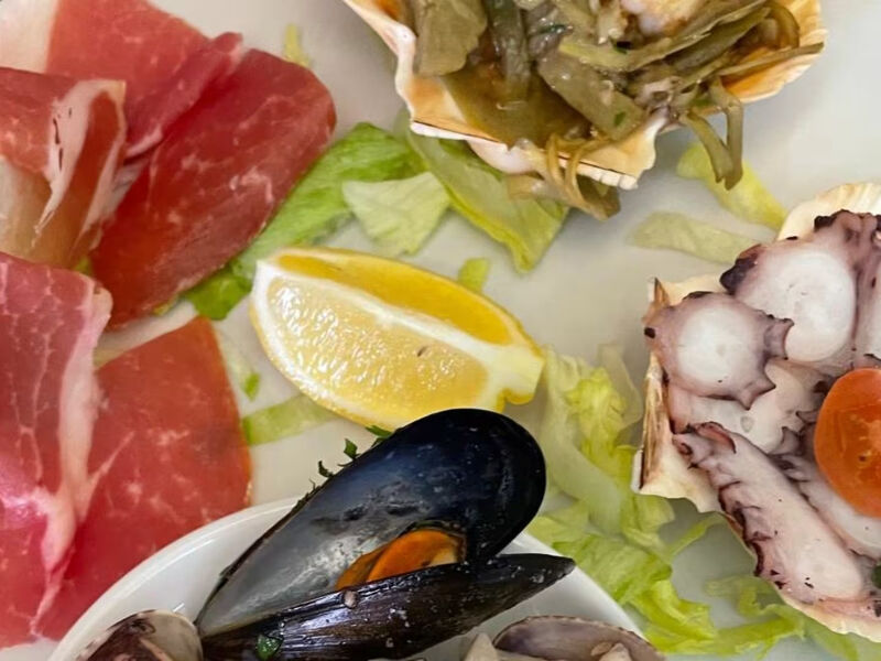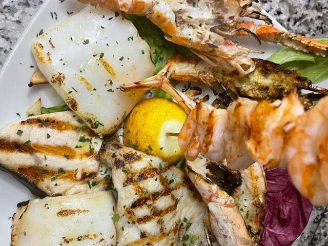 Il menu propone piatti della tradizione italiana e mediterranea: dalla pizza cotta in forno tradizionale a primi di mare come linguine all’astice, spaghetti ai frutti di mare o alle vongole con bottarga e calamaretti al cartoccio I prezzi sono moderati: circa €15 a persona, considerando antipasto e dessert o primo piatto